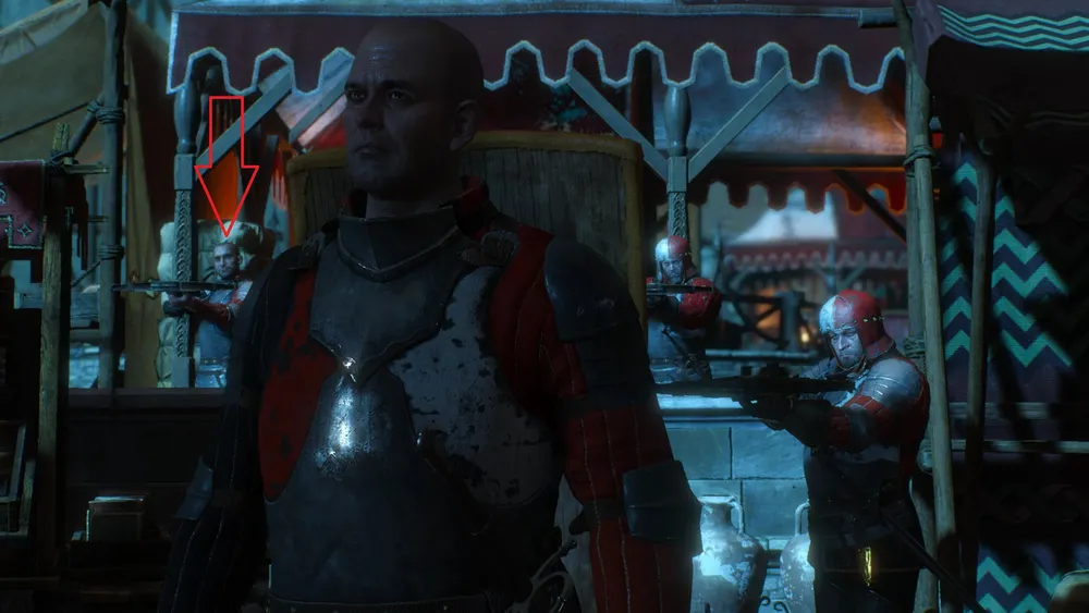 Разумеется, заявиться в реданский гарнизон с вопросом «Эй, мужики, где тут у вас повар? Мне ему нужно отдать эликсир, от которого вы выстроитесь в очередь в нужник» мы не можем, поэтому придется узнать о нем как-нибудь по-другому. Например, подслушать разговоры стражников возле аукционного дома в надежде, что кто-нибудь из них обмолвится словечком о поваре.