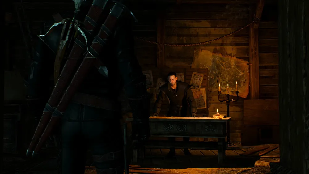 Итак, с розой или с кусочком полотна, отправляемся в корчму в Оксенфурт, где нас будет ждать человек Ольгерда, так как сам атаман отбыл навестить лорда Безмятежного. В корчме нас неожиданно окликнет Гюнтер о‘Дим, который будет восседать прямо на столе, явно не видимый для других посетителей.