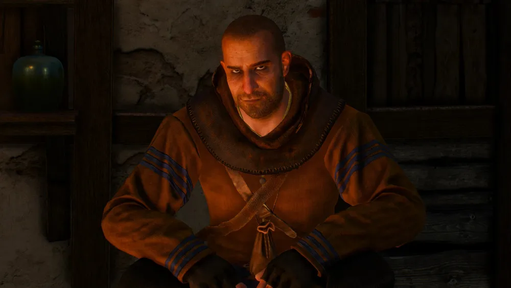 Ну, да и черт бы с ним, ведьмаку не привыкать. Рассказываем травнику о цели нашего прибытия, и он без лишних вопросов впускает нас в свою кладовку, где нас уже поджидает тот самый таинственный незнакомец.