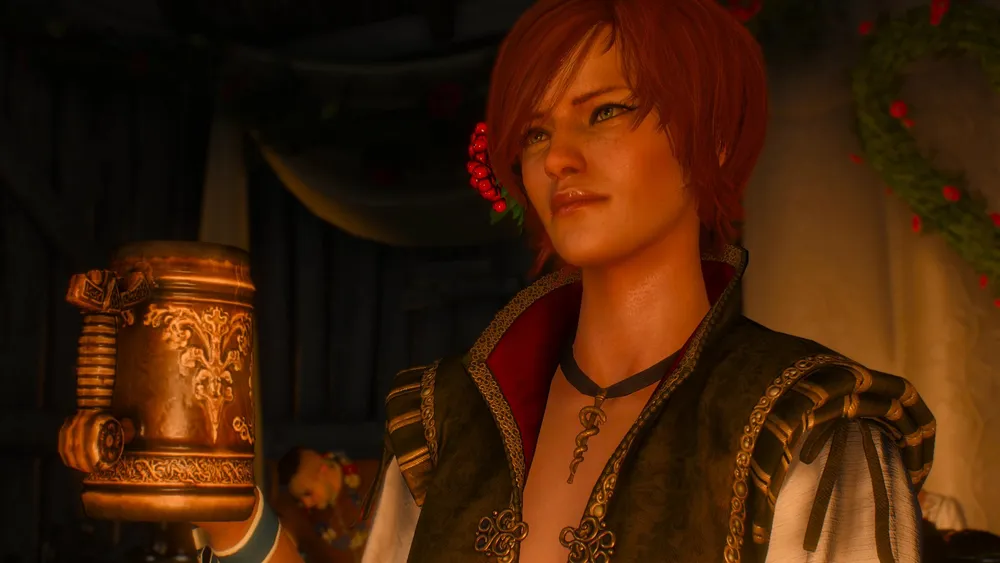 Появление Геральта удивит Шани, а принесенный подарок вызовет на её лице улыбку. На веточку рябины девушка отреагирует более эмоционально, а вот на другой подарок - куда более сдержанно. Ведьмак и Шани поболтают немного, выпьют за дружбу или за этот вечер, все зависит от выбранной вами реплики.