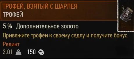 Книготорговец, узнав, что ведьмак продает картину Ван Рога, тут же выразит желание её купить. За полотно он отвалит нам целых 500 крон и вдобавок «трофей, взятый с шарлея», который оставил некогда в заклад ведьмак Гаэтан (если помните, ведьмак из школы Кота, который встречается при выполнении задания «Игры кошек и волков»)