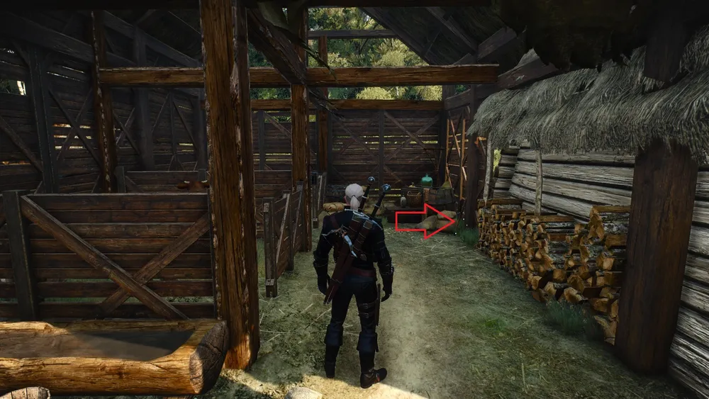 Второй странностью окажется запах гниющей плоти. Ведьмак почует его слева от хаты стариков.