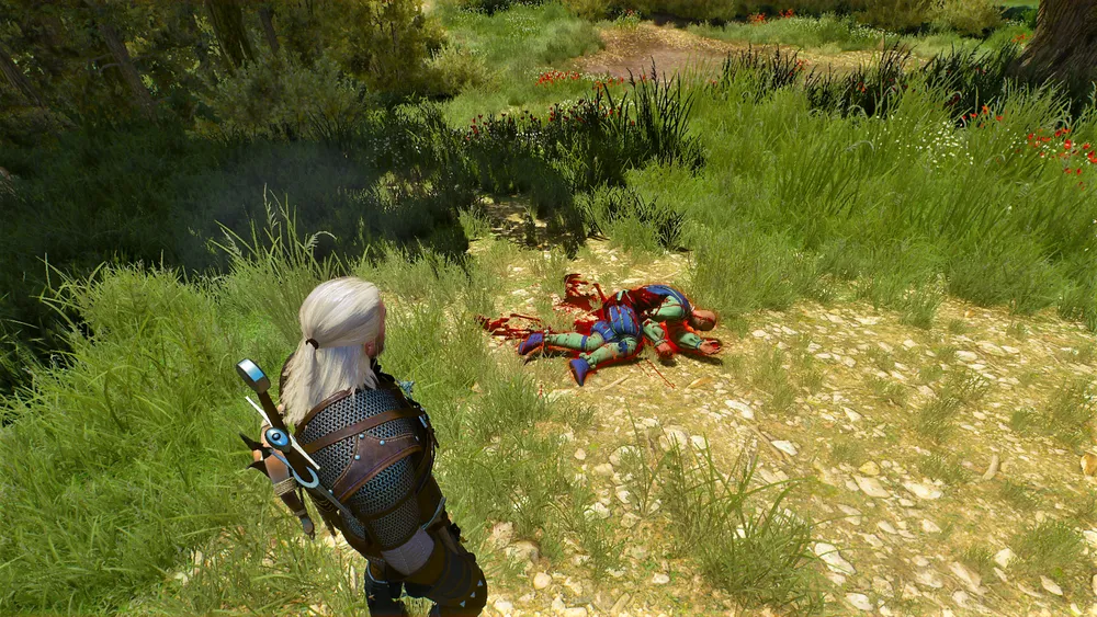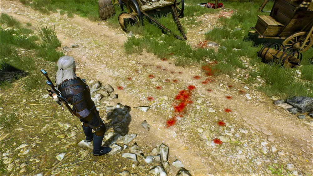 Геральту беглого взгляда хватит, чтобы понять, что раненый уже совсем не раненый, а вполне себе мёртвый человек. И бинты, которые так нужны были Гастону, несчастному уже не помогут. Самое время задать резонный вопрос: а что же всё-таки тут произошло? Гастон охотно расскажет. Он ехал на повозке, никого не трогал, как вдруг на дорогу выбрался истекающий кровью человек и упал тут же без сознания. Видя, в каком плачевном состоянии находится раненый, Гастон немедленно принялся оказывать помощь. Похвалит ли его ведьмак за благородство или проявит недоверие – не важно. Геральта заинтересует этот случай, ведь не каждый день находишь на дороге мертвеца в древнем нагруднике, со сломанной ногой и перерезанной бедренной артерией. Кровь из него лилась рекой, и ведёт кровавый след к поместью.
