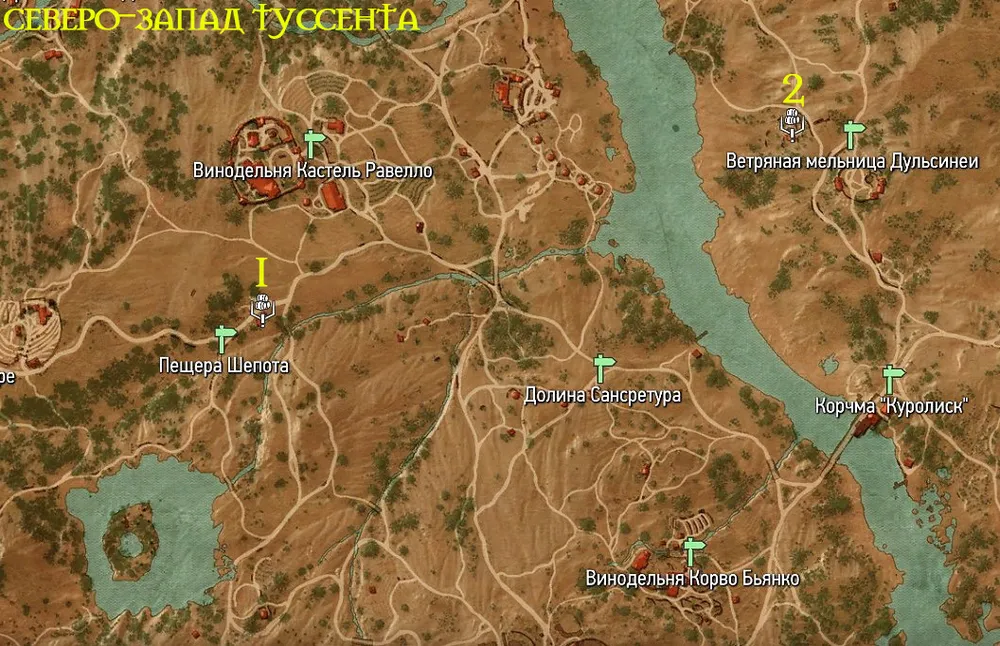 Странствуя по просторам Туссента, по дороге можно набрести на виноделов, которые нуждаются в помощи ведьмака по очищению приглянувшейся пещеры от всякой мерзкой живности. Эти мини-задания просты как пять копеек, потому нет смысла предельно подробно на них останавливаться. Простого перечисления, мест нахождения и основной информации будет вполне достаточно.