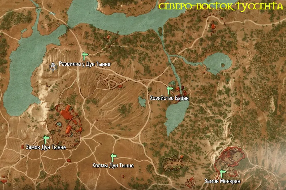 После разговора игра отметит на карте места, где нужна помощь ведьмака. Этих мест будет аж 15 штук, и разбросаны они по всей территории княжества. Похоже, рыцари совсем расслабились, раз в Туссенте накопилось столько проблемных мест.