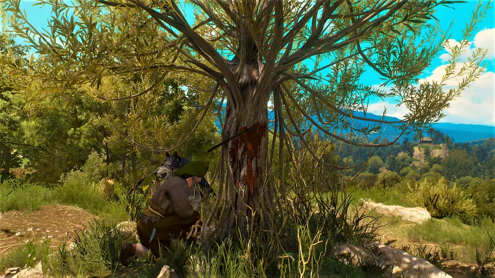 Якоб оказался свидетелем одного очень необычного события: едва дровосек ударил топором ветлу, как оттуда хлынула кровь. Самая настоящая человеческая. Лесоруб, большой любитель сказок, сразу же смекнул, что этим деревом может быть заколдованная барышня Дафна из сказки о Дафне, рыцаре Гарете и ведьме с Рысьей скалы. О своей догадке он поведает ведьмаку. Настроенный скептически, ведьмак решит прежде всего осмотреть дерево. К удивлению, кровь из дерева течёт на самом деле человеческая, а среди ветвей слышится женский плач. Да ещё медальон вибрирует как сумасшедший, что явственно указывает на наличие магии. Осмотревшись вокруг, ведьмак заметит ещё одну странность: вокруг ветлы все деревья будут вырублены, а вот саму ветлу никто не тронул.