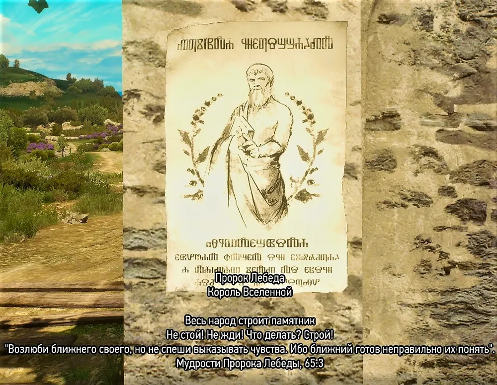 Важно. Это задание неразрывно связано с ведьмачьим заказом «Коровьи лепёшки», и будет активировано после выполнения оного. Правда, странствуя по Туссенту, можно самостоятельно найти точки интереса, которые связаны с этим заданием, но без выполнения ведьмачьего заказа задание «По стопам Пророка Лебеды» завершить будет нельзя.