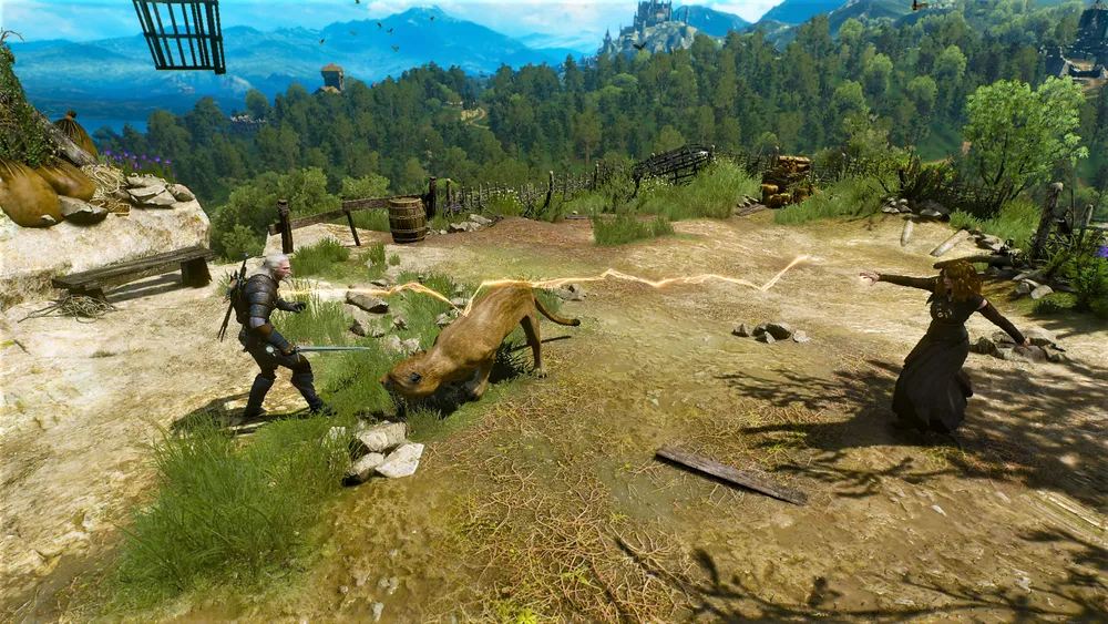 Хата ведьмы находится на самой вершине Рысьей скалы. На пути к вершине Геральту встретится пантера, которая в отличие от своих сородичей не будет нападать на ведьмака, а также на мини-карте появится значок, указывающий на наличие пещеры прямо под скалой. Если есть желание, то можно исследовать эту пещеру прямо сейчас.