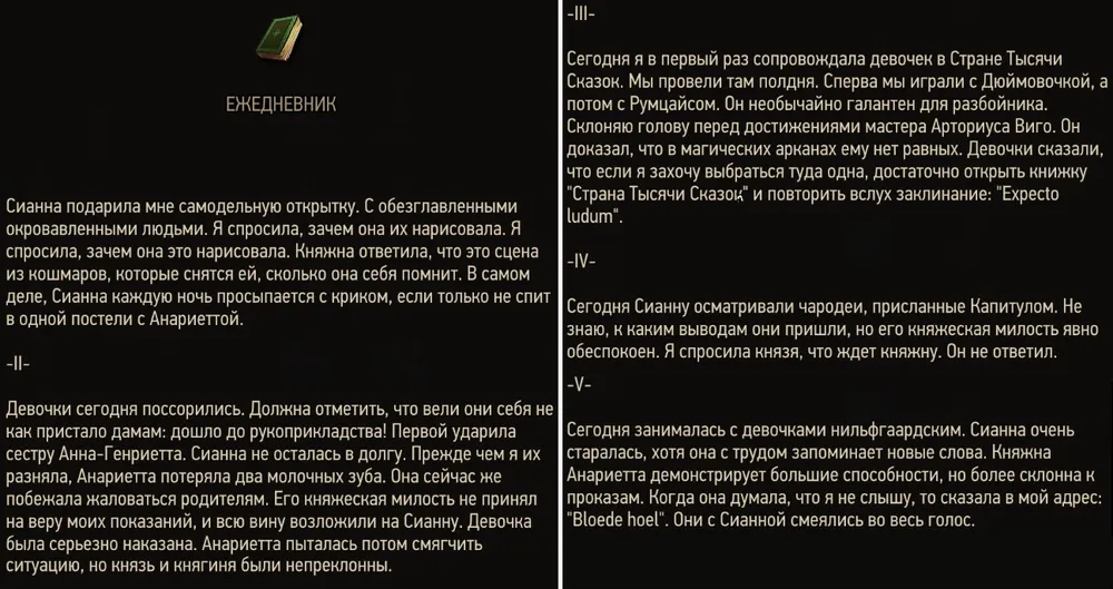 4. «Его княжеская милость беспокоится о дочерях…» (необязательная реплика для продолжения сюжетной линии) – приглашённые чародеи при осмотре Сианны определили у неё синдром «Черного Солнца».