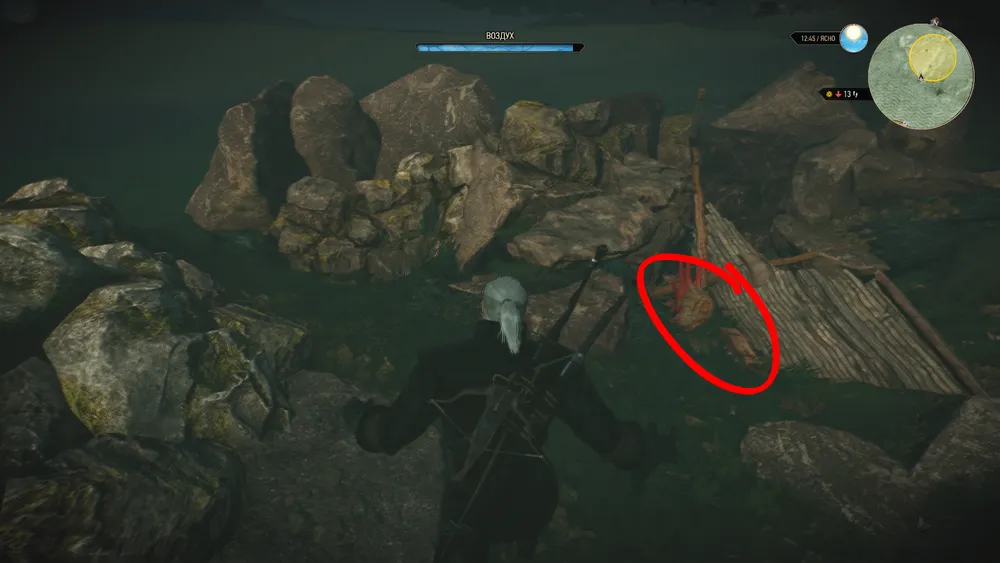 2. Если квестовый сундук к этому моменту уже был обобран, квест завершится сразу же после активации. В противном случае игра отправит нас искать сундук на дно реки в непосредственной близости от брошенного селения. Подвох же заключается в том, что его стерегут один или два утопца 10 уровня, поэтому перед погружением не забудьте привести арбалет в боевую готовность. Как только сундук будет открыт, квест завершится.