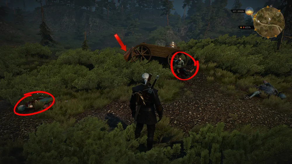 Внимание. Если Геральт, расправившись с туманником, покинет это место, то при повторном визите он рискует столкнуться уже с противником посерьезнее – накером 18 уровня. Причем накер заводится у телеги вне зависимости от того, выполнен был квест или нет.