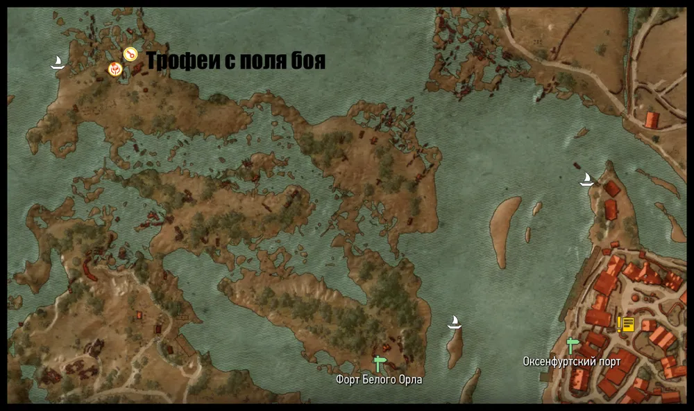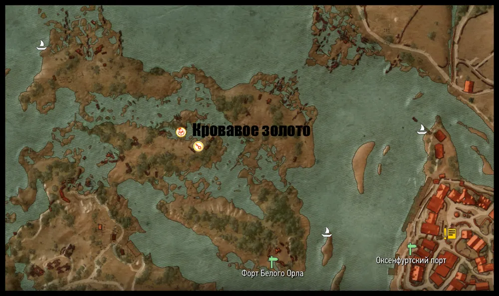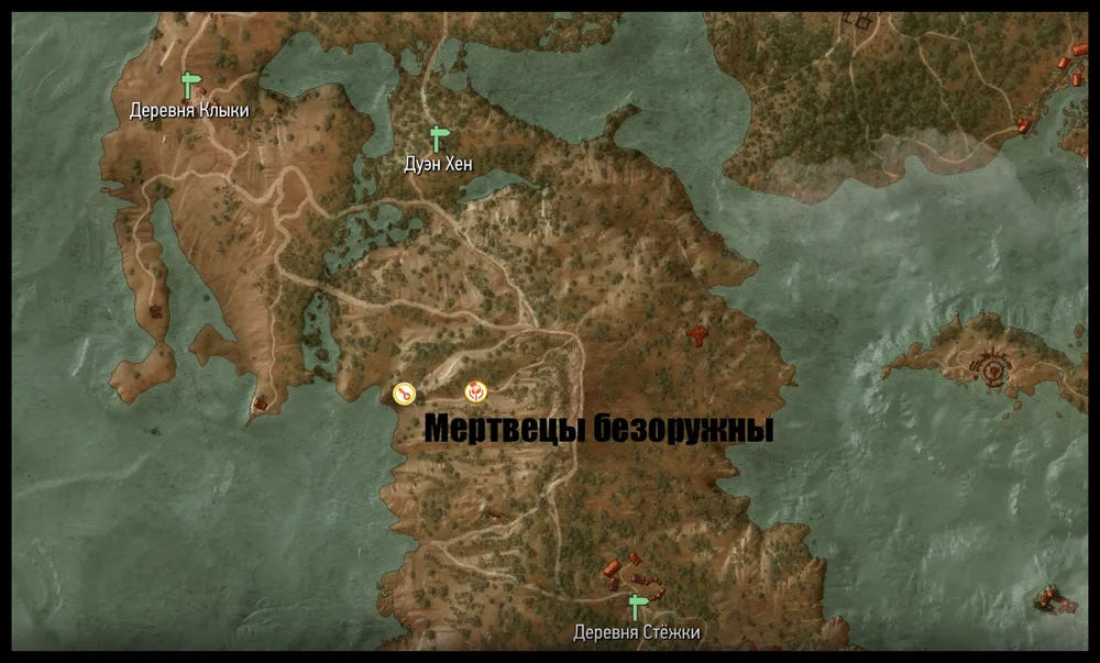 1. Островок западнее Пограничного поста, коли Геральт туда наведается, встретит его стайкой накеров (6 морд 6 уровня), смердящей горой трупов и брошенными оборонительными сооружениями. Накеров, конечно же, следует разобрать на ингредиенты, а местность, где они тусовались, внимательно осмотреть. Отдельно валяющийся под остатками дозорной вышки труп краснолюда, несомненно, должен привлечь внимание ведьмака. В его карманах он найдет письмо и ключ к сокровищам.