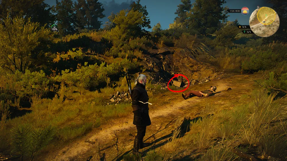 2. Ознакомление с письмом активирует задание. Если квестовый сундук к этому моменту уже был обобран, оно завершится сразу же после активации. В противном случае отправляем Геральта на поиски схрона с ценностями. Как следует из письма, награбленная бандитами добыча, после их бесславной кончины вроде как ставшая бесхозной, припрятана где-то неподалеку от их лагеря. И правда, заветный сундук отыщется через дорогу на пригорке, под березкой. Обобрать его могут помешать накеры 6 уровня, но как только он будет открыт, квест завершится.