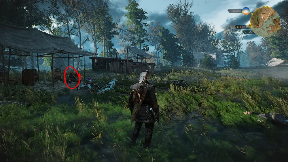 2. Прочтение письма активирует квест, а кровавые пятна на земле, прекрасно видимые при включенном ведьмачьем чутье, укажут, где искать ларь с добром – под грудой досок у самой кучи с трупами. Прежде чем разносить доски Аардом, стоит прижечь Игни пчелиное гнездо над ними, иначе растревоженные Знаком насекомые не дадут ведьмаку спокойно обшарить чужой схрон. Как только ларь будет открыт, квест завершится.