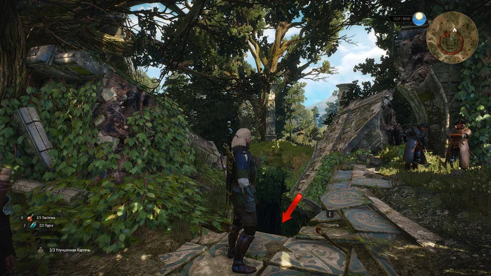1. Согласно сведениям, полученным от Радовида, Филиппа скрывается в подземных катакомбах Эст Тайяра (1). Прибыв на место, Геральт обнаружит довольно-таки многочисленный отряд охотников за колдуньями. Из разговора с ними станет ясно, что ребяткам удалось найти некий камень, наполненный магической силой и открывающий вход в подземелье, – ключ от убежища чародейки (автоматически добавится в отдел Рюкзака для квестовых предметов). После получения ключа можно сразу отправиться в подземные руины, а можно еще немного поболтать с охотниками. Если поинтересоваться: «Мне стоит знать еще что-то?», то один из бойцов расскажет о неудаче, постигшей тех, кто пытался добраться до логова чародейки самостоятельно, не дождавшись ведьмака.