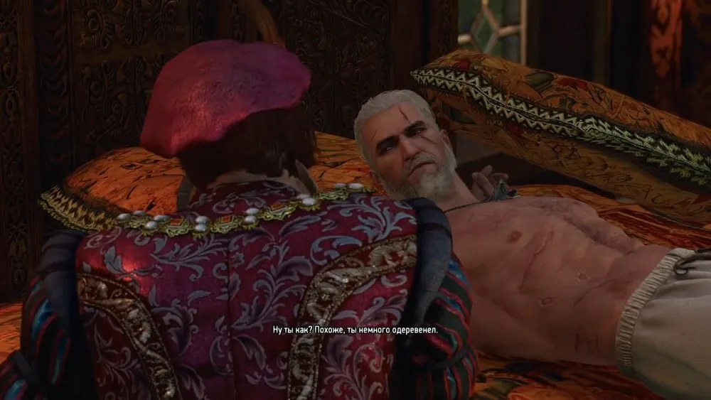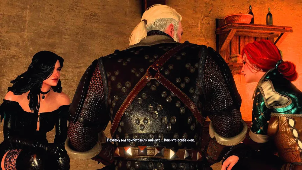 1. Вне зависимости от того, присутствовал Геральт на встрече Цири с чародейками или позволил ей самой разбираться с Филиппой и Ритой, после окончания встречи он выкажет желание пойти отдохнуть. Утром следующего дня его нежно разбудят Йеннифэр и Трисс. Дамы признаются, что им надоело спорить и конкурировать друг с другом из-за него. Вот они и подумали, а почему бы вместо соперничества не проводить время с максимальной пользой всем вместе? И для первого свидания втроем красавицы-затейницы приготовили кое-что особенное. От Геральта же потребуется немногое – раздобыть вина и прийти вечером в «Зимородок». Как бы ни отреагировал еще не очухавшийся спросонья ведьмак на странное поведение своих возлюбленных, он все равно получит заманчивое приглашение.