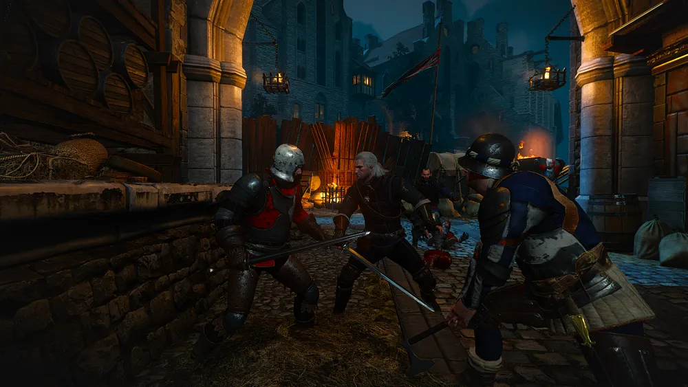- «Я не позволю тебе их убить» – в таком случае Дийкстра велит своим людям убить еще и ведьмака до кучи. В итоге завяжется неравный бой – трое темерцев и Геральт против десятка вооруженных братков 30 уровня и самого графа Ройвена. Лишь после гибели их всех снова запустится катсцена. Роше поблагодарит Белого Волка за помощь и пригласит в Вызиму, где его непременно примут с почестями. На этом квест завершится, и игра бесцеремонно выставит нас за сцену.