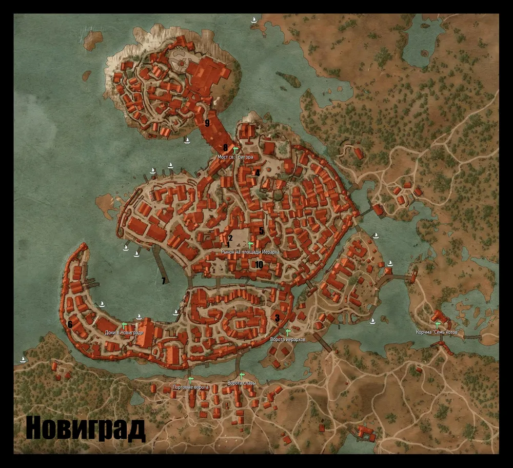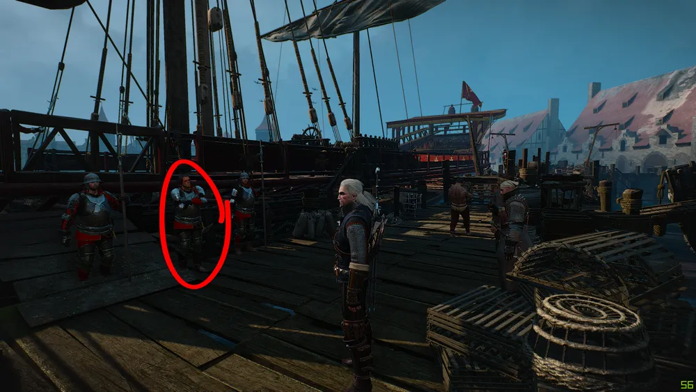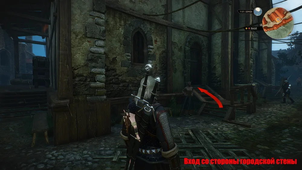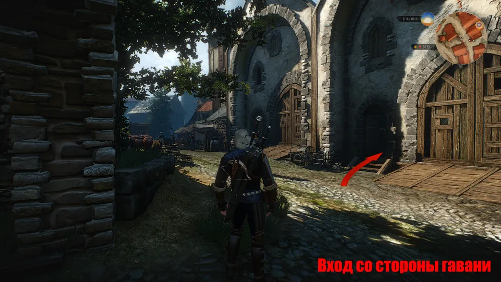 1. Итак, Дийкстра назначил Геральту встречу на одном из портовых складов (6). Отправляемся туда. Попасть внутрь можно через любой из двух входов, хоть со стороны городской стены, хоть со стороны гавани – достаточно просто постучать.