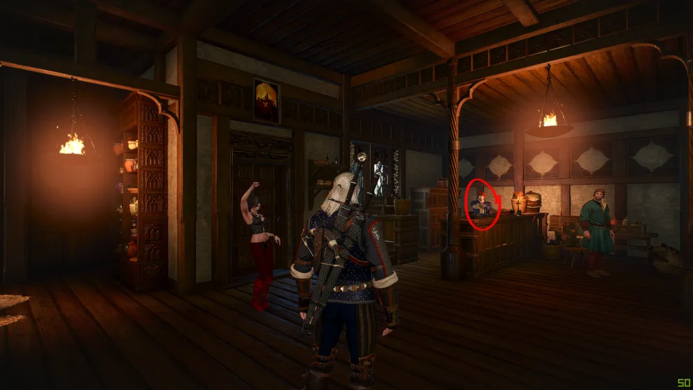 Закупившись вином, отправляйте своего Геральта на романтическое рандеву в корчму «Зимородок» (5), причем дожидаться вечера совершенно не обязательно. Дамы сняли номер на втором этаже – первая дверь справа от входа на этаж. Постучите, и вам откроют.