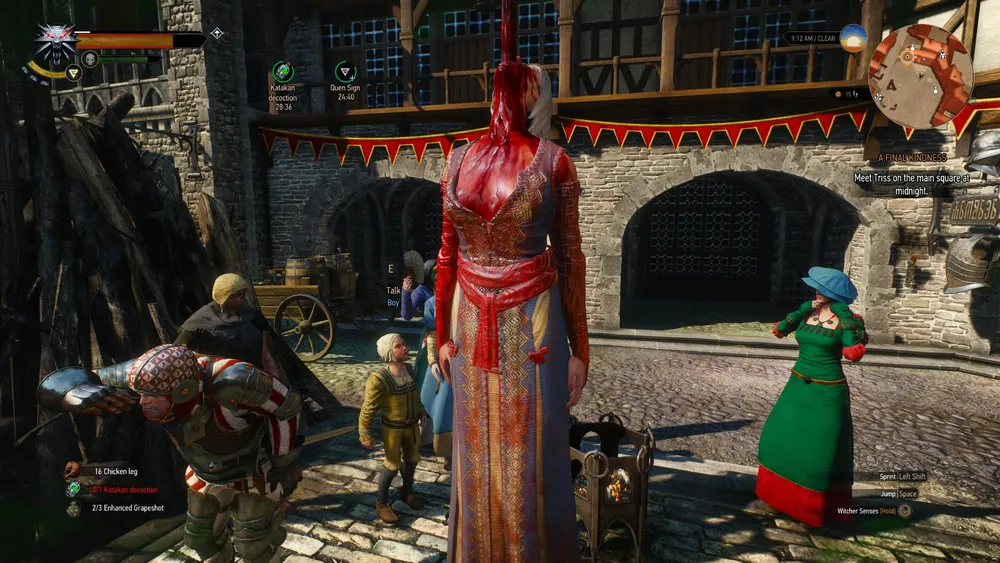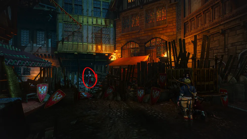 1. Трисс условится встретиться с Геральтом ночью на площади Иерарха. Самый простой способ дождаться нужного часа – помедитировать до полуночи, после чего отправиться на «стрелку» с чародейкой. Она будет ждать его у входа в Банк Вивальди (1). Магичка попросит ведьмака отвлечь или как-то иначе разобраться со стражниками, охраняющими тело казненной по приказу Радовида Кейры. Сама же Трисс до поры до времени решит не появляться на площади, ведь ее могут опознать и схватить.