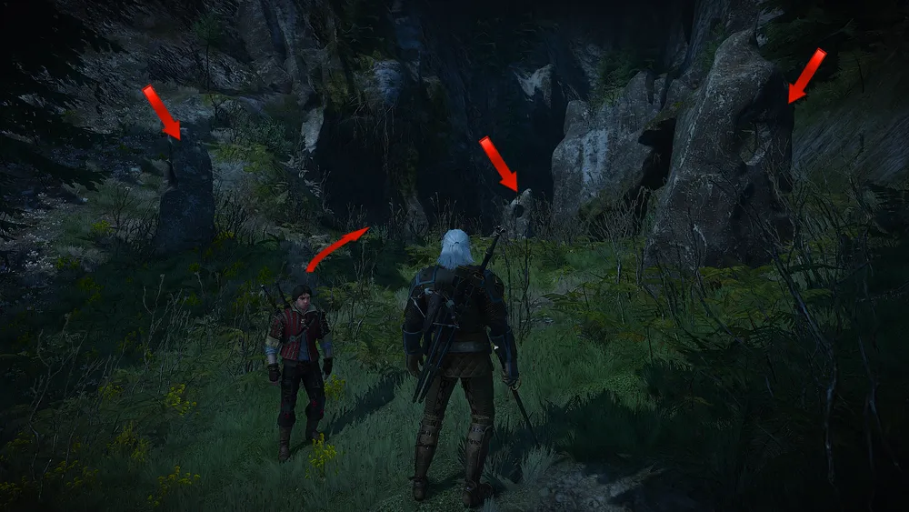 Примечание. Оптимальный путь от крепости до точки начала квеста на карте отмечен светло-зеленым. Если отправиться туда несколько иным маршрутом и до завершения основного квеста «Дабы вилохвоста приманить...», то может так получиться, что сработает триггер, и Эскель увяжется за Геральтом. К сожалению, спутник из него в данном конкретном случае никакущий. Он будет просто путаться под ногами и ни разу не поможет в битве.