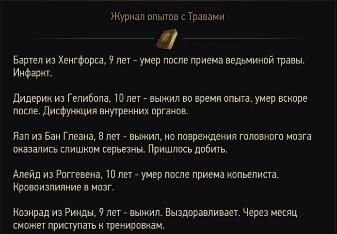 Настоятельно советую не пренебрегать чтением внутриигровых документов, связанных с побочными миссиями в крепости ведьмаков, включая документы из бесплатного DLC «Комплект Школы Волка». Вместе все эти дневники, письма, записки проливают свет на прошлое Каэр Морхен и на истории жизни и смерти его прежних обитателей.