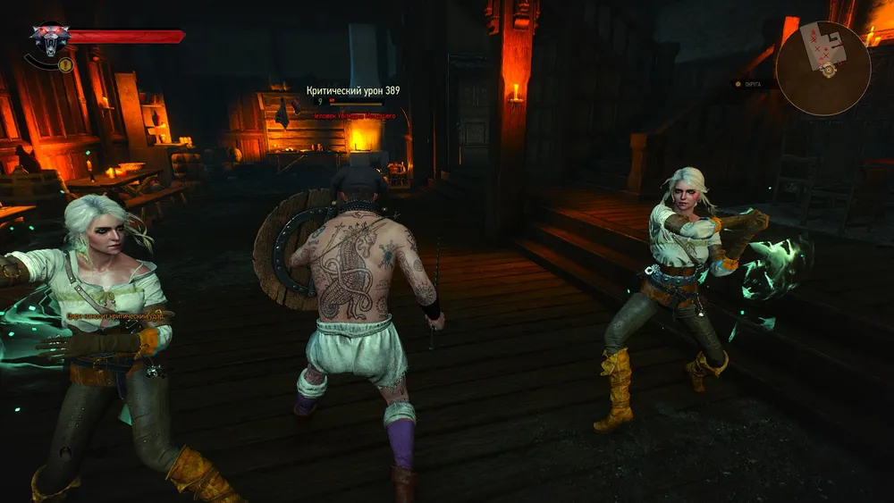 4. Цири отвесила Младшему знатных люлей, но это было только началом. Услышав в комнате босса шум, его "шестерки" поспешили на помощь. Надо было что-то делать. Дуду, обернувшись Младшим, сбежал, а девушка приняла бой. С новой боевой способностью группового блинкования битва с тремя бандитами, ворвавшимися в комнату, где еще недавно пытали допплера, существенно упростилась. Разобравшись с ними, Цири покинула комнату и отправилась вниз по лестнице, и на каждом этаже ее поджидали люди Ублюдка (два этажа по 4 человека на каждом). Они и представить себе не могли, что одна хрупкая воспитанница Каэр Морхен стоит всех их вместе взятых.