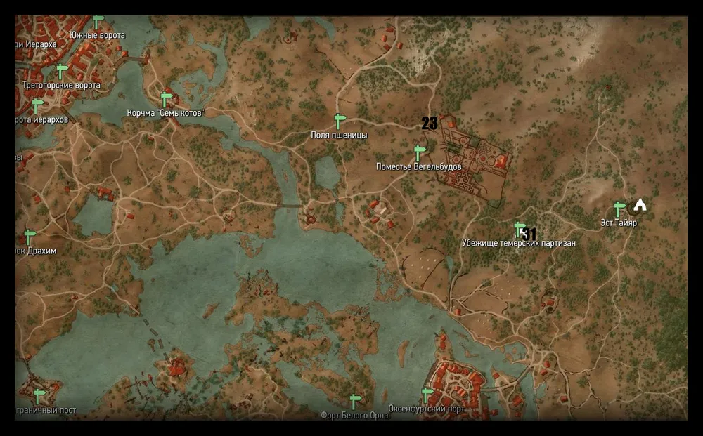 В тайнике в одном из сундуков обнаружился недурственный меч/доспех (все зависит от рандома). В другом сундуке Геральт нашел "Таинственное письмо" и три десятка крон (негусто, однако). Прочитав письмо, наш герой с удивлением для себя узнал, что Младший не просто снюхался с реданцами - он работал на самого короля Радовида. После того, как словам низушка Рико из казино нашлось еще и письменное подтверждение, можно было смело отправляться к Дийкстре (24). Так ведьмак и сделал.