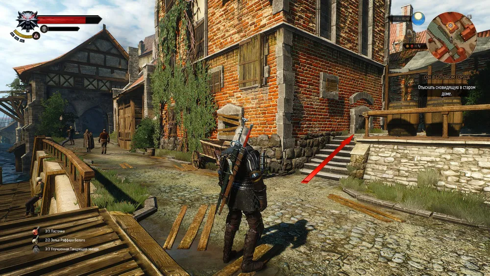 В какой-то момент вор зайдет в подворотню, и если ведьмак последует за ним, то наткнется на группу головорезов. Ребятки захотят доходчиво объяснить нашему герою, что любопытство наказуемо, но, отхватив просветляющую разум порцию люлей, добровольно и с песней расскажут ему все-все про Гнилую рощу.