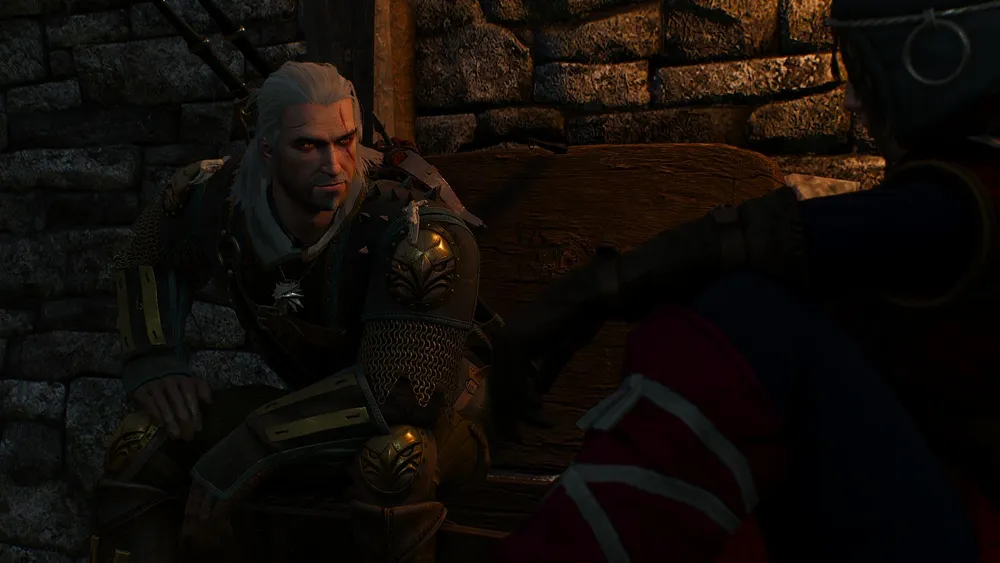 Можете сразу подойти и поговорить с зовущим вас господином, а можете сперва осмотреться. Несколько тюков и ящиков с лутом, парочка трупов островитян (один в центре помещения, другой возле комнатки, где находится окликнувший ведьмака товарищ) – вот и все, что найдет здесь Геральт. Портал давным-давно закрылся, отрезав путь назад из башни. Выходит, побеседовать – это единственное, что остается нашему герою в сложившейся ситуации.