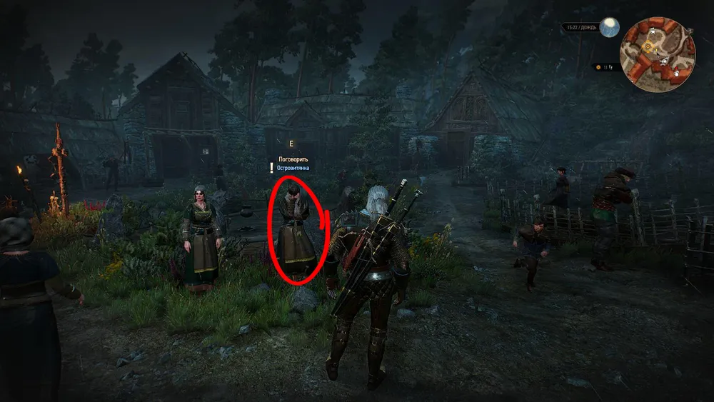 Когда прочие островитяне разойдутся, к Геральту подойдет мужичок с расспросами о своем брате. Хурни отправился в башню с другими, но так и не вернулся.
