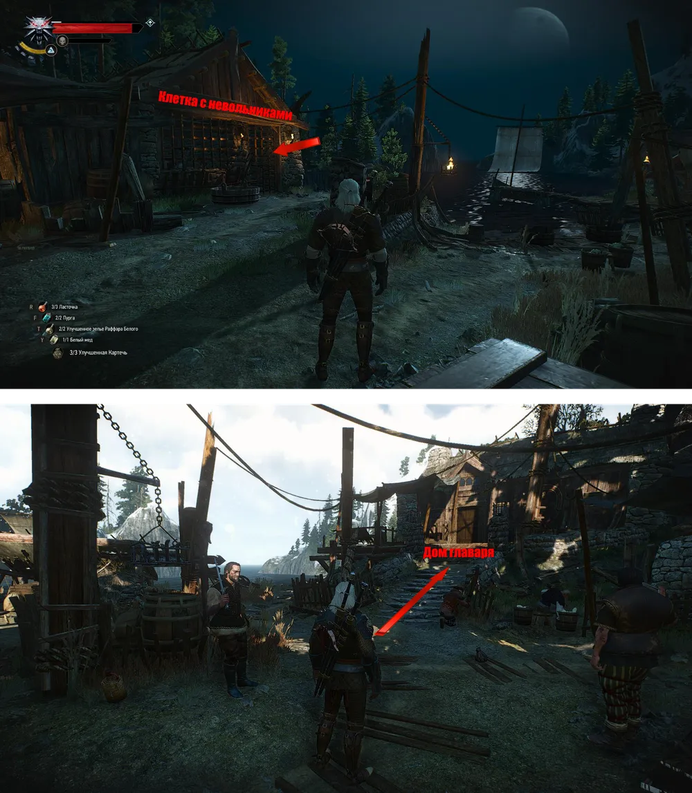 Совет. Сразу после прощания с бывшими узниками работорговцев можно будет вернуться в Троттхейм и облутить деревню – вас никто и пальцем не тронет. Но если Геральт, воспользовавшись быстрым путешествием, переместится из деревни куда-нибудь подальше, а потом вернется обратно, то пираты его тут же атакуют.