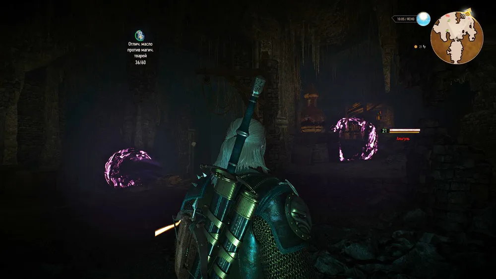Стоит Геральту войти внутрь лаборатории, и дефенсивный регулятор магии снова даст о себе знать. В помещении откроются порталы, и начнется телепортация монстров. Первыми прибудут три альгуля 21 уровня.
