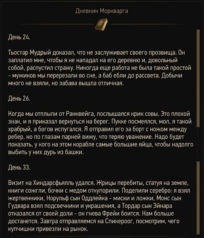 - Если прежде ваш герой уже общался с Йостой, но недостаточно обстоятельно, то после обнаружения Дневника игра снова пошлет вас к ней, дабы вы смогли узнать ее версию произошедшего в роще (см. п. 2), а женщина, в свою очередь, отправит вас к Тордару (5) в Ларвик.