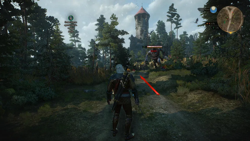 2. Отправляемся к башне (11). По дороге к ней можно наткнуться на циклопа 21 уровня. Возле самой башни порхают сирены, но почему-то они не всегда реагируют на приближающегося ведьмака.