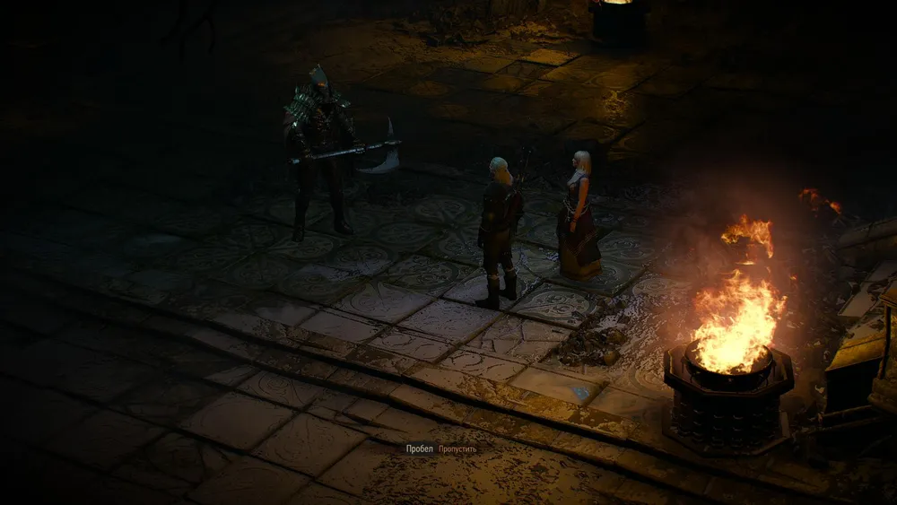 Внимание. Ни в коем случае не дайте Кейре погибнуть в этом подземном зале. Без ее магического купола он будет в принципе непроходимым из-за убивающего все живое, ведьмака в том числе, ледяного бурана. В итоге продвижение по сюжету станет невозможно, даже если после смерти магички ваш Геральт успеет укрыться от стужи в предыдущем помещении.