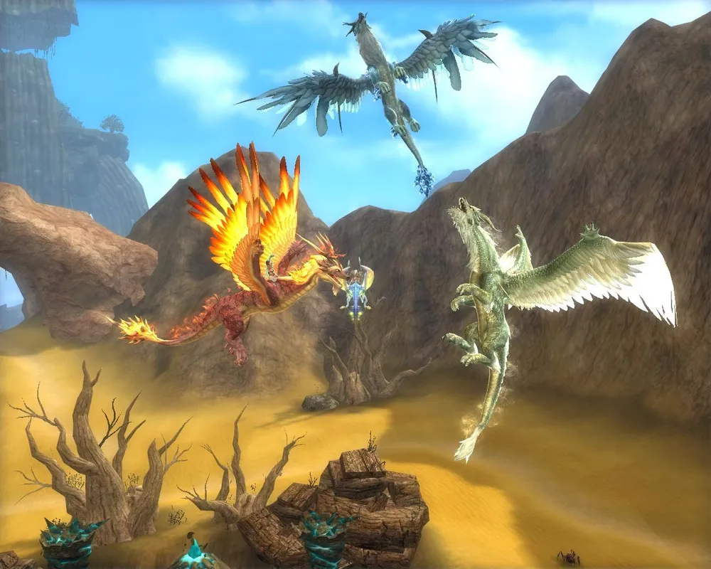Возможно, вам уже хочется спросить, «почему же эта игра называется «World of Dragons», если о драконах пока не было сказано ни слова? Может быть, их и нет там вовсе? Успокойтесь, драконы в игре есть, и их там великое множество на самый разнообразный вкус. Помимо трех великих драконов – огненного Фиреана, водяного Азуриана и зловещего дракона тьмы Диебло, строящего свои черные планы где-то в параллельном пространстве, вас ждут драконы большие и малые, дружелюбные и враждебные, но и это еще не все… В этой игре разработчики решили действовать по принципу «Дракона всем даром, и пусть никто не уйдет!» В определенный момент своей игровой жизни с вашим персонажем начинает разговаривать яйцо (драконье, разумеется), из которого затем должно вылупиться маленькое чешуйчатое чудо. После этого вы должны усердно холить и лелеять юного дракончика, пока тот не вырастет в полноценное, гордое, сильное и безумно привязанное к вам существо. В World of Dragons дракон – не роскошь, а средство передвижения и одновременно один из самых смертоносных среди доступных вам видов оружия, чем разработчики беззастенчиво пользуются, чтобы, к примеру, оживить механику PvP. Современного геймера не удивишь масштабными наземными и водными сражениями, но воздушные бои, особенно если речь идет об осаде или обороне замка с участием нескольких гильдий с каждой стороны, поистине впечатляют.