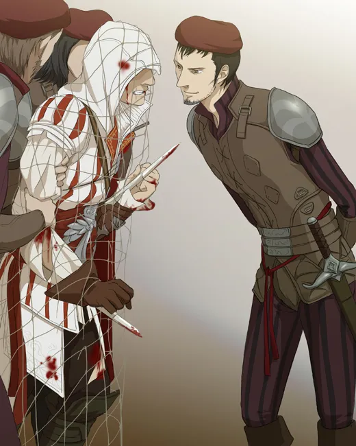Эцио изогнул губы в усмешке. «Делай, что хочешь», - сказал он смертельно спокойным тоном. - «Они не заплатят больше, если притащишь меня живьем. Они сделают тебя примером для остальных - посмертно. Потому что боятся и меня, и тех, кто хоть как-то связан со мной. Решай сейчас», - он наклонился вперед, несмотря на сеть и мужчин, держащих его руки. - «Решай, пока я не оправился от битвы с вами».