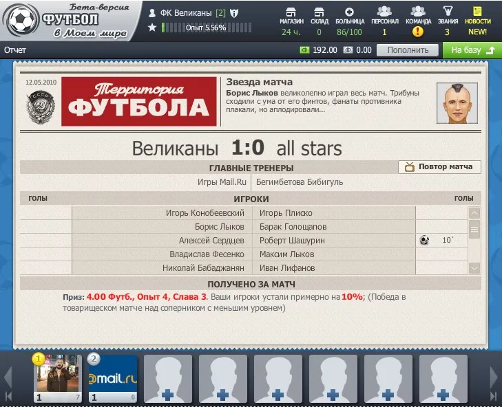 3. Сыграйте пару матчей. Это просто и быстро: можно сразу перейти к просмотру результатов.