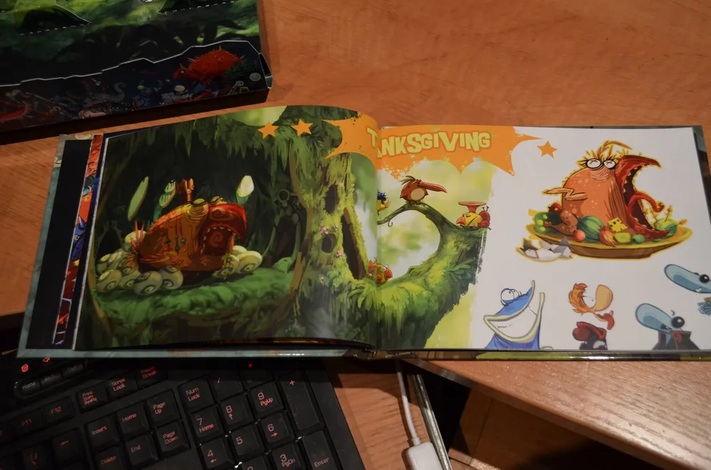 Далее из коробки извлекается великолепный артбук The Art of Rayman. Из него можно почерпнуть много интересной и познавательной информации... Например почему Голоббокс синий. Но! Если уж делаете русское издание, то делайте до конца. Артбук не переведен, а это пахнет халтурой. Мне, как языковому снобу, это даже приятно, но что ж делать тем, кто в силу неспособности или лени не знает английского языка и покупает только русские версии (SIC!) игр? Но других претензий (хотя какие тут претензии? Я получил полноценный оригинальный артбук :) ) к артбуку нет.