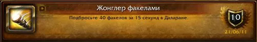 Достижение "жонглер факелами", используя аддон Juggler (скачать с курса, для активации аддона в игре пишем /juggler)