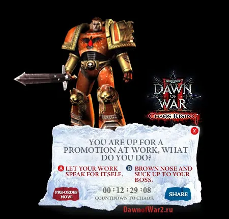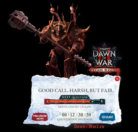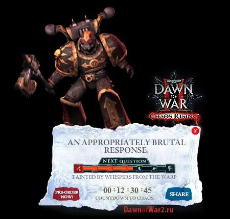 В преддверии релиза Chaos Rising, Relic сделали небольшой виджет для самых точных поклонников игры. С помощью этой маленькой программы, мы можем следить за оставшимся до выпуска игры временем. Но это еще не все...
