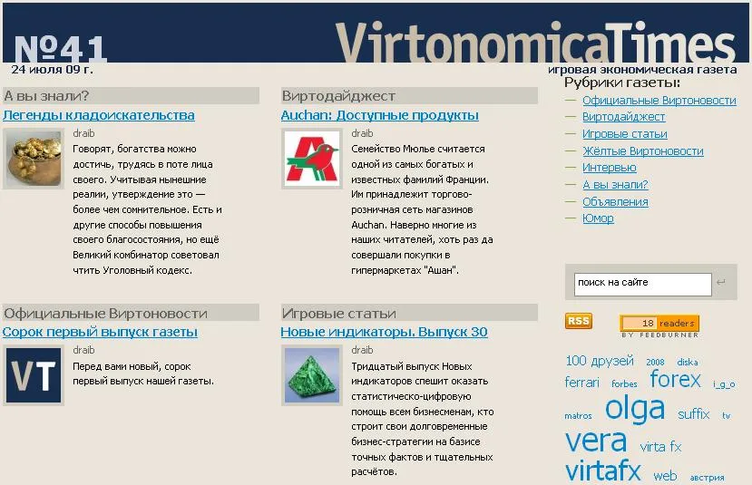 Бизнесмены Виртономики не исключение, поэтому состояние вирто-рынка они изучают не только по сводкам своего финансового отдела, но и по игровой экономической газете "VirtonomicaTimes".