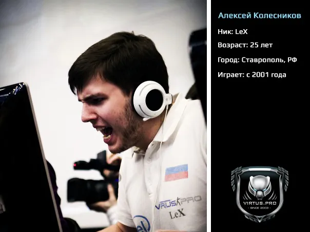 Алексей «LeX» Колесников начинал свою карьеру профессионального игрока в CS, как раз в команде Virtus.Pro. В ее составе неоднократно становился чемпионом различных кибер турниров, в том числе чемпионата мира ACON5 в 2005 году. С ноября 2004 года являлся капитаном команды. До возвращения в команду Алексей «LeX» Колесников играл за состав по War inc. Вместе с VaderN, Fent1k, gopstoperr, 4Trigger, Алексей смог стать чемпионом WCG 2011 russia.