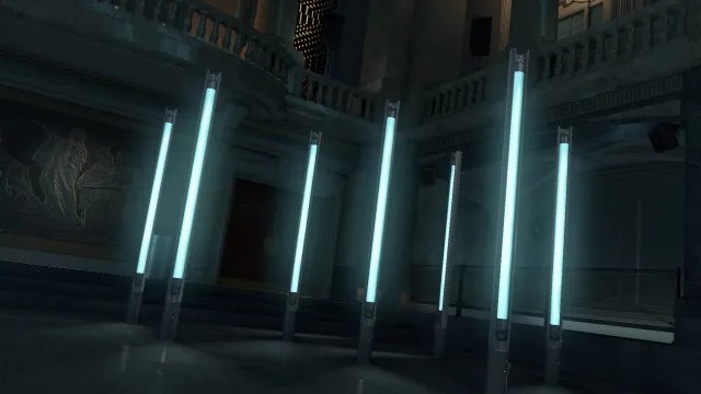 Пролёт камеры по выставке с крупным планом нескольких экспонатов. Интуиция подсказывает, что в них обязано быть что-то зашифровано.