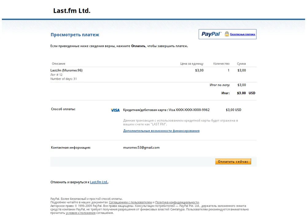 Вот я и не оплачивал last.fm и сейчас покажу как надо это делать (в картинках) :