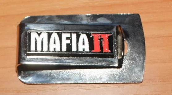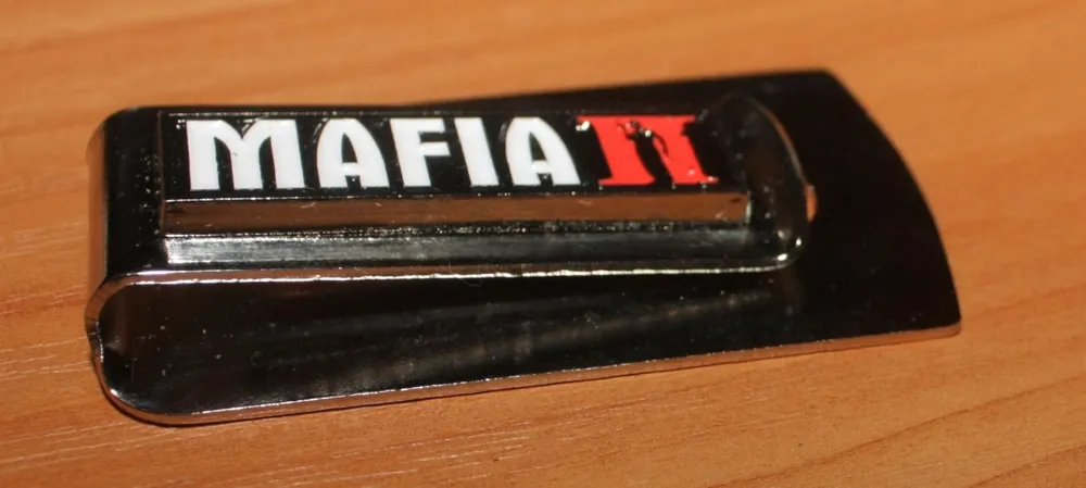 И последнее, зажим для денег. Зажим металлический, с выгравированным логотипом. Посмотрите: