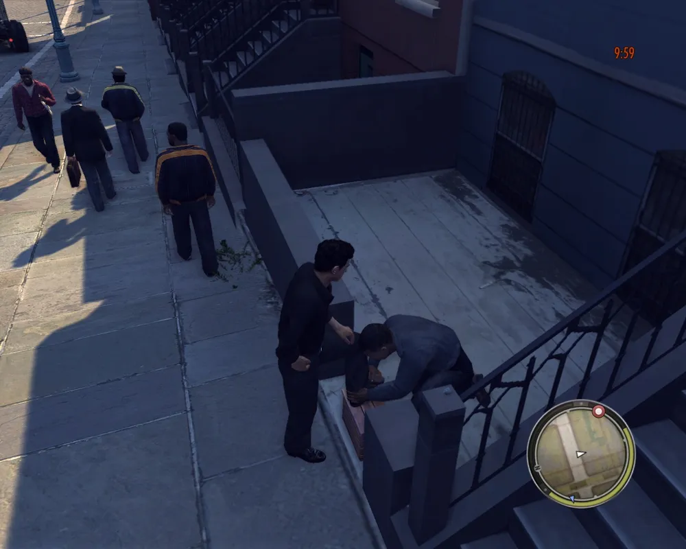 Если немного понаглеть, то на Вас нападут мафиози, что держат район, в котором Вы находитесь. Если наглеете не слишком сильно, то Вам просто попытаются надавать тумаков, лучше сразу поумерьте пыл, а то начнётся стрельба и Вам несдобровать. Если не отрывать ответный огонь, то полиция попытается убить всех Ваших обидчиков. В случае с бандами негров в демо-версии им это прекрасно удаётся. К слову о неграх, если побить представителя негроидной расы, то он будет обвинять Вас в расизме. Мексиканцы себе такого не позволяют.