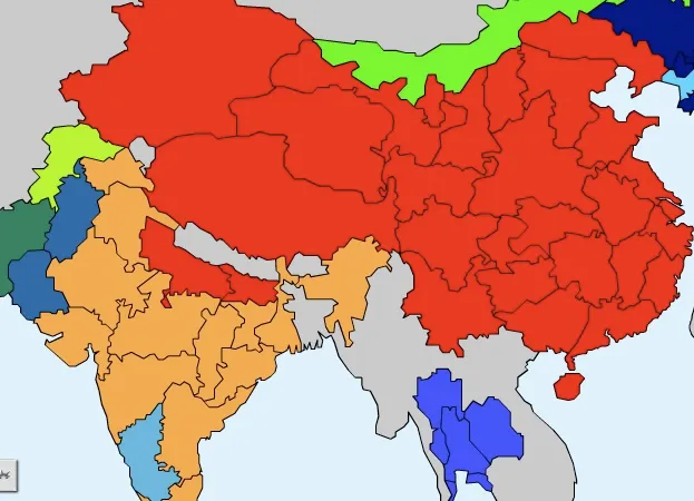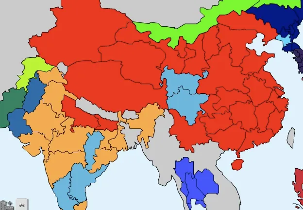 Ранее в этой войне Китай был основной сценой боевых действий, и все следили за тем, как еСША и ЭДЕН пробивались к регионам Liaoning и Heilongjiang. С тех времён еКитай превратился в жизнеспособную молодую страну и контролирует все свои родные регионы, кроме трёх (Heilongjiang и Inner Mongolia контролируется еВенгрией, а еРоссия всё ещё удерживает Jilin). Тем временем, позиции еСША на континенте ослабли, у них осталось последнее прибежище, Karnataka с хай-железом. Поддержанные Фениксом восстания вернули бывшие территории еСША еКитаю и еИндии. Организованное Фениксом восстание в Sichuan успешно выдавило еСША из еКитая в день 806, в то время как Chhattisgarh and Andhra Pradesh были возвращены еИндии Фениксом в то время, пока еСША были сфокусированы на войне в Европе.