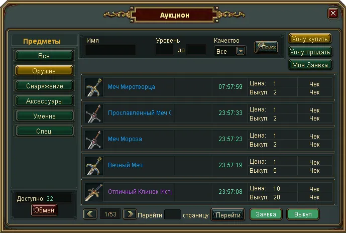 • Аукцион. Место перепродажи артефактов, оружия, питомцев, скиллов для Героев. Пожалуй самое излюбленное место для любителей срубить чеков (аналог монет) или же наоборот - затариться крутой экипировкой для "ногебательства". Позволяет создать стартовый капитал даже неопытным игрокам.